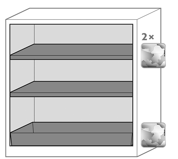 Body colour anthracite grey (RAL 7016), with wing doors in light grey (RAL 7035), interior equipment with 2 x shelf, 1 x bottom collecting sump (sheet steel galvanised)