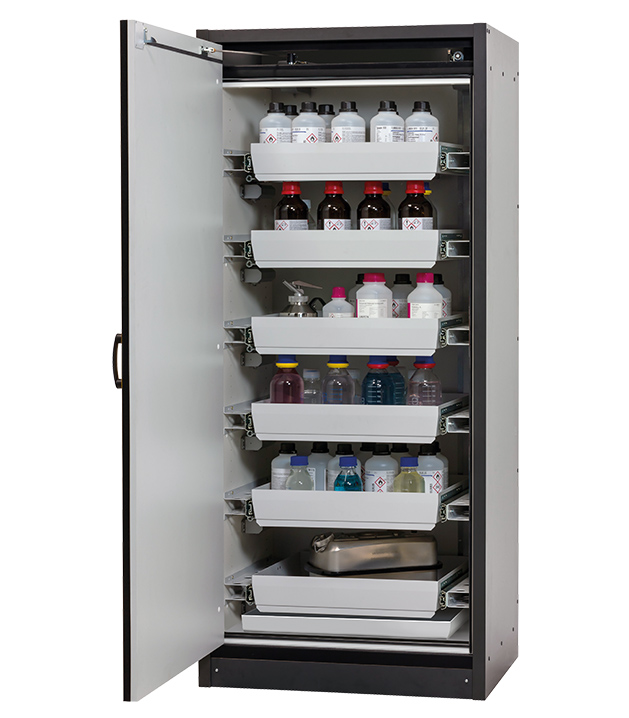 Parcels or general cargo are usually delivered within one week of the delivery date. In the case of dispatch via a special forwarding agent (for safety storage cabinets and hazardous substance workstations), delivery is carried out regularly after all necessary delivery information (e.g. checklists) has been provided, on average within 10 working days after the provision date. The exact delivery period (provision time + delivery time) can be found in the detailed order confirmation or as a guide from your asecos contact person.