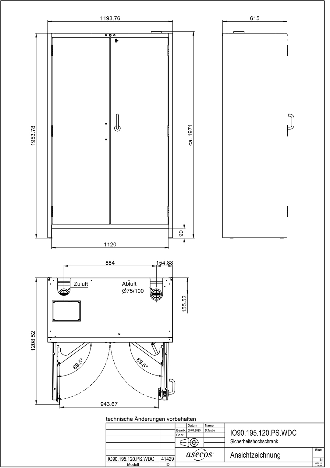 | Ángulo de abertura de la puerta | 89,5 ° |