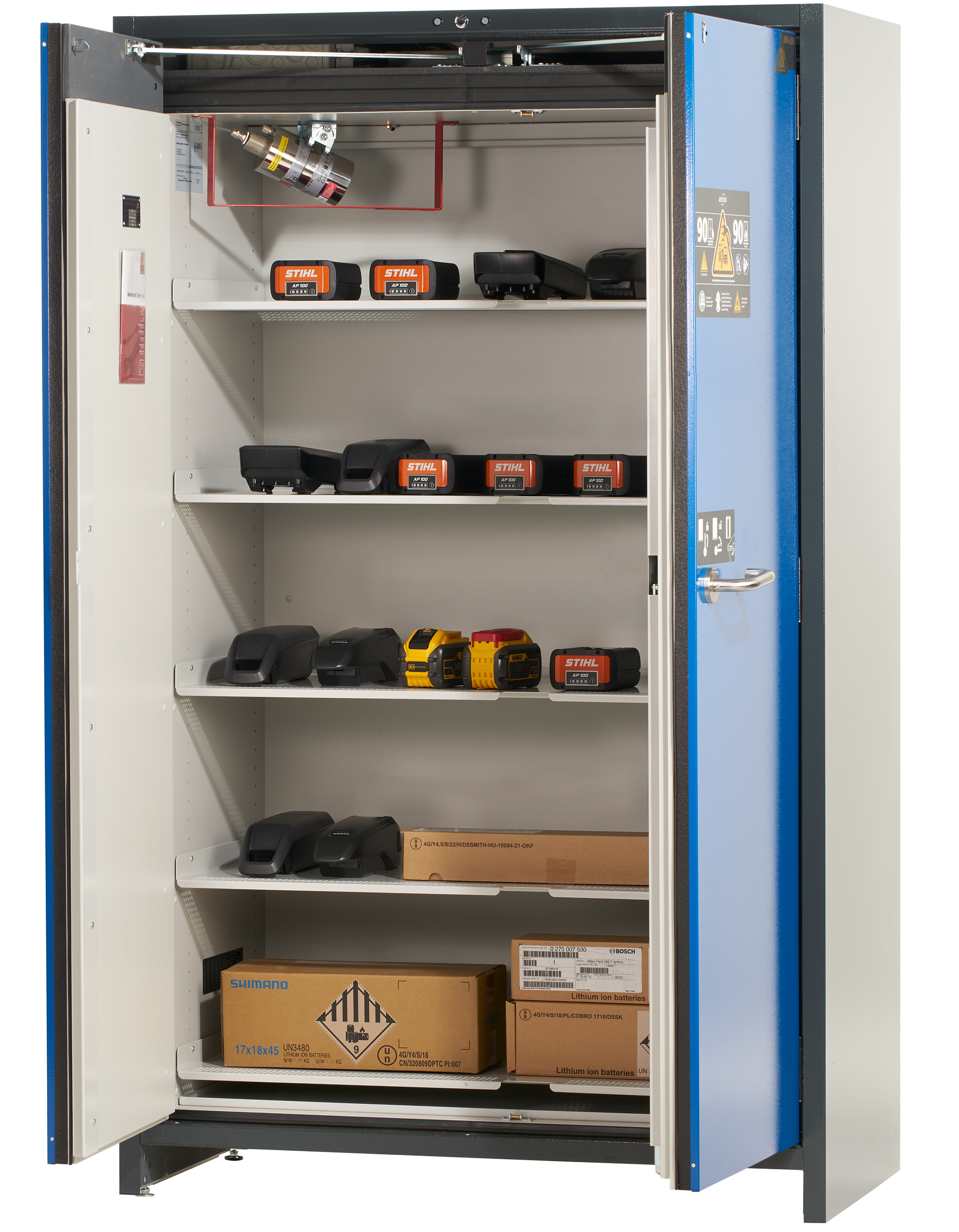- La bandeja aislada – Seguridad anti-propagación probada en todos los niveles de almacenamiento. En caso de incendio de una batería, se evita la propagación a otras baterías.