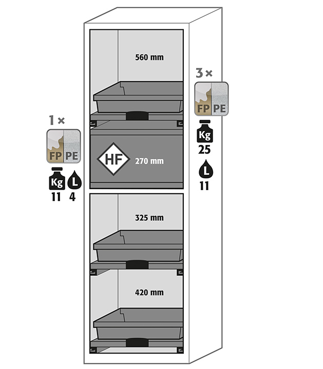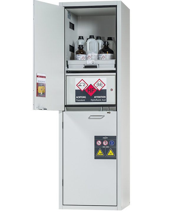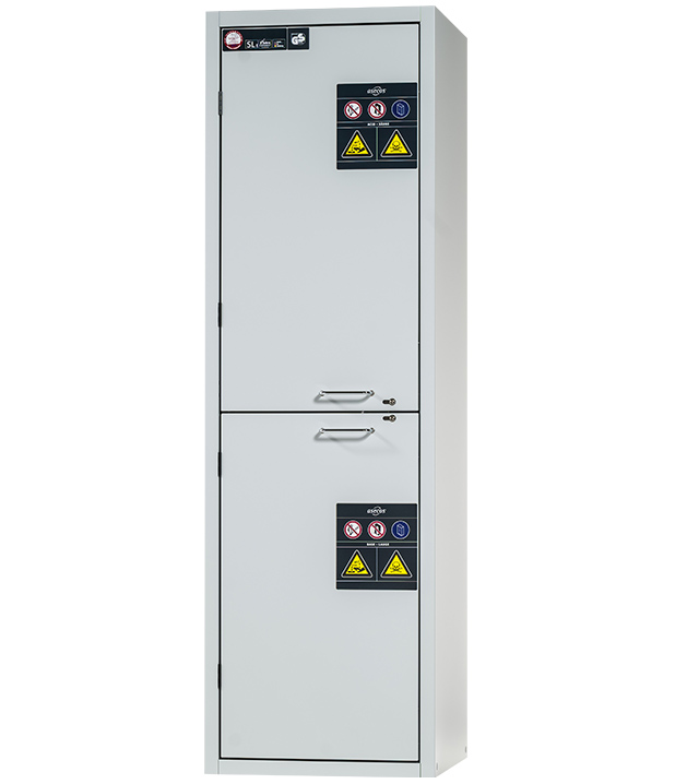 - kaksi yhdessä: kaksi hermeettisesti eristettyä säilytysosastoa sallii eristettyjen happojen ja emästen säilytyksen yhdessä kaapissa