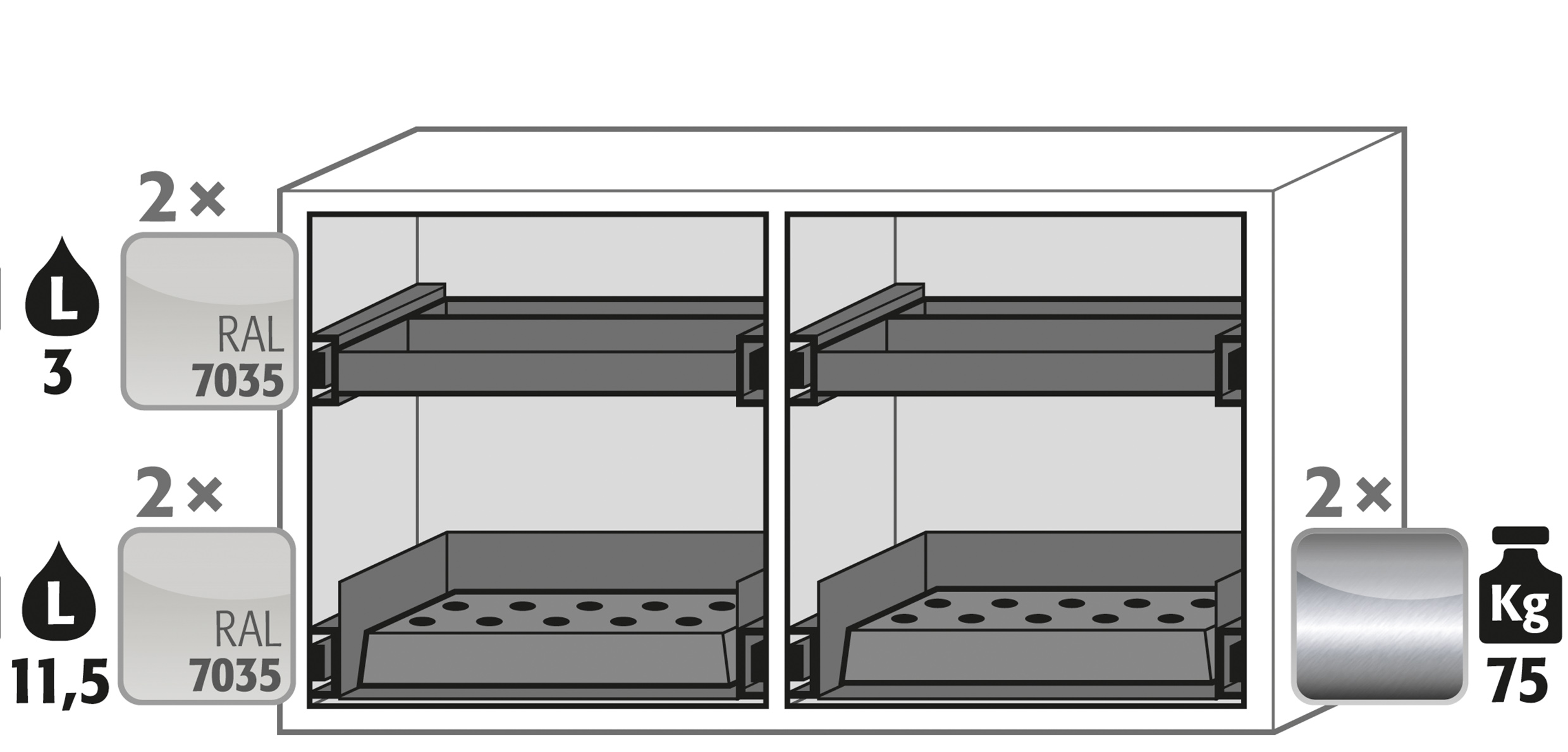 Noudata vaarallisten aineiden varastointia koskevia kansallisia sääntöjä ja määräyksiä tuotetta konfiguroidessasi. Jos sinulla on kysyttävää, asecos-ammattilaiset auttavat sinua mielellään.