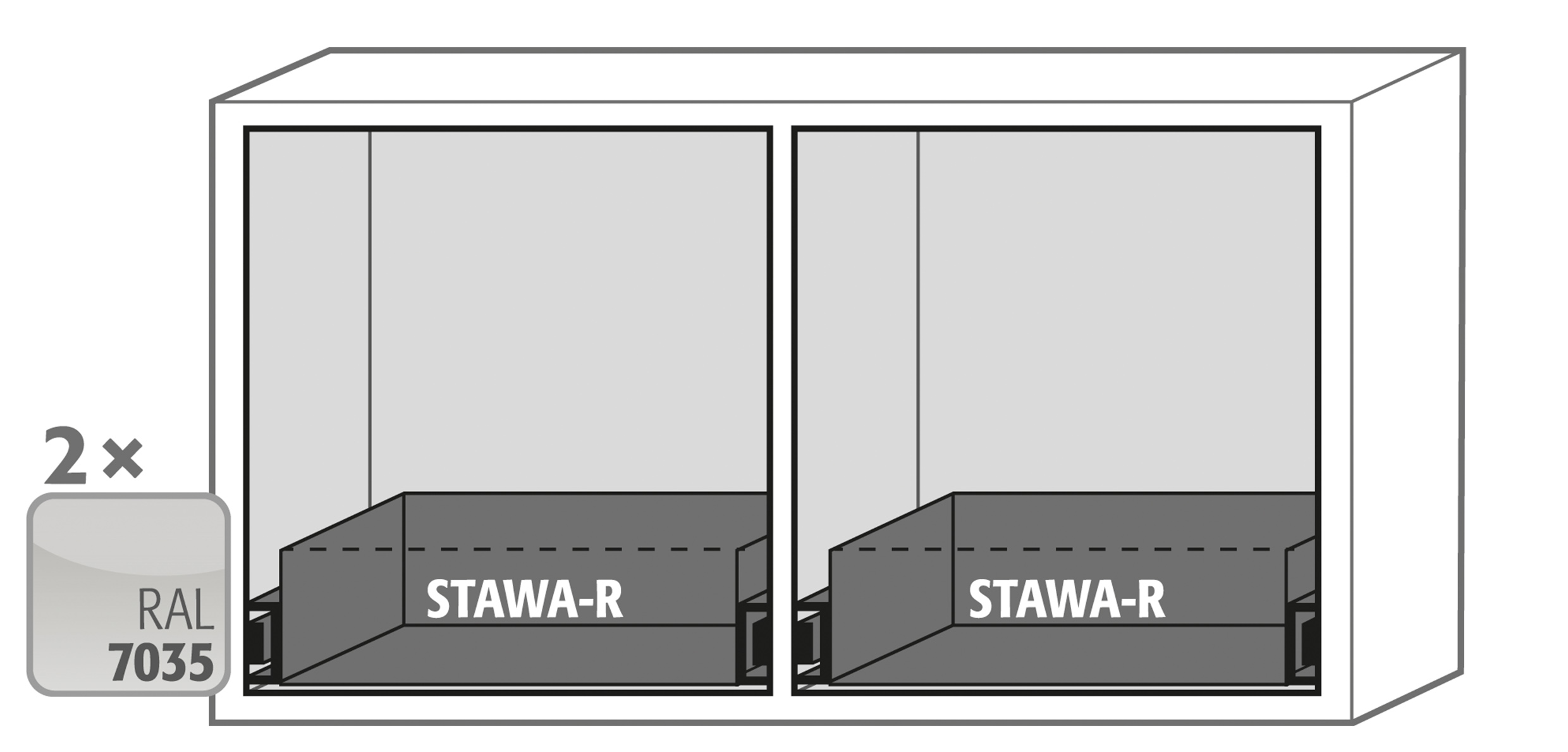 gris clair (RAL 7035), équipée avec 2 x tiroir (tôle d'acier revêtement époxy)