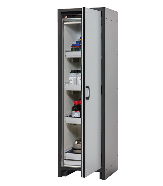 rompkleur antracietgrijs, met draaideur in Lichtgrijs (RAL 7035), Interieur met 4 x schuiflade, 1 x bodemopvangbak (plaatstaal met epoxy coating)