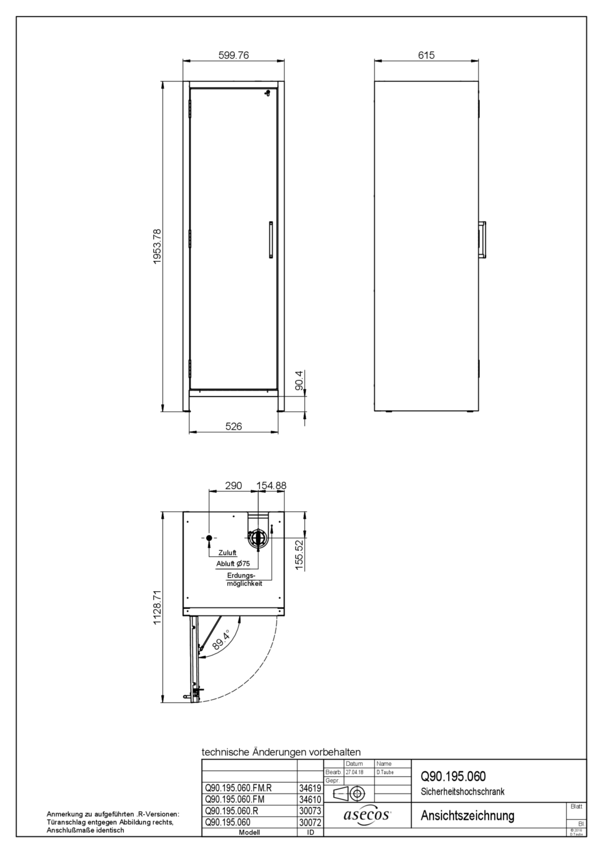 | Yttermått B x D x H | 599 x 615 x 1953 mm |