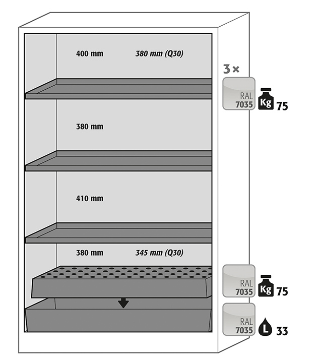 Beakta gällande nationella regler och föreskrifter för förvaring av farliga ämnen när du konfigurerar produkten. Om du är tveksam står asecos experter gärna till din tjänst.